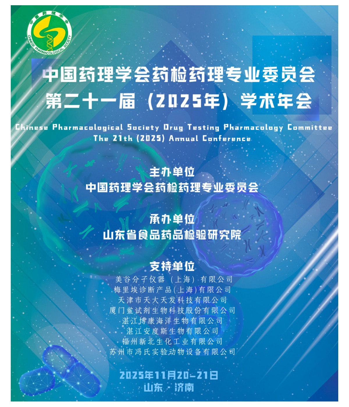 2025年11月20日—21日,中國藥理學會藥檢藥理專業(yè)委員會第二十一屆(2025年)學術年會在山東順利召開。本次大會為總結我國藥檢藥理領域研究所取得的成果,加強我國藥檢藥理新成就和新經(jīng)驗的交流,提高藥物有效性和安全性的研究水平,促進藥品高質量發(fā)展。